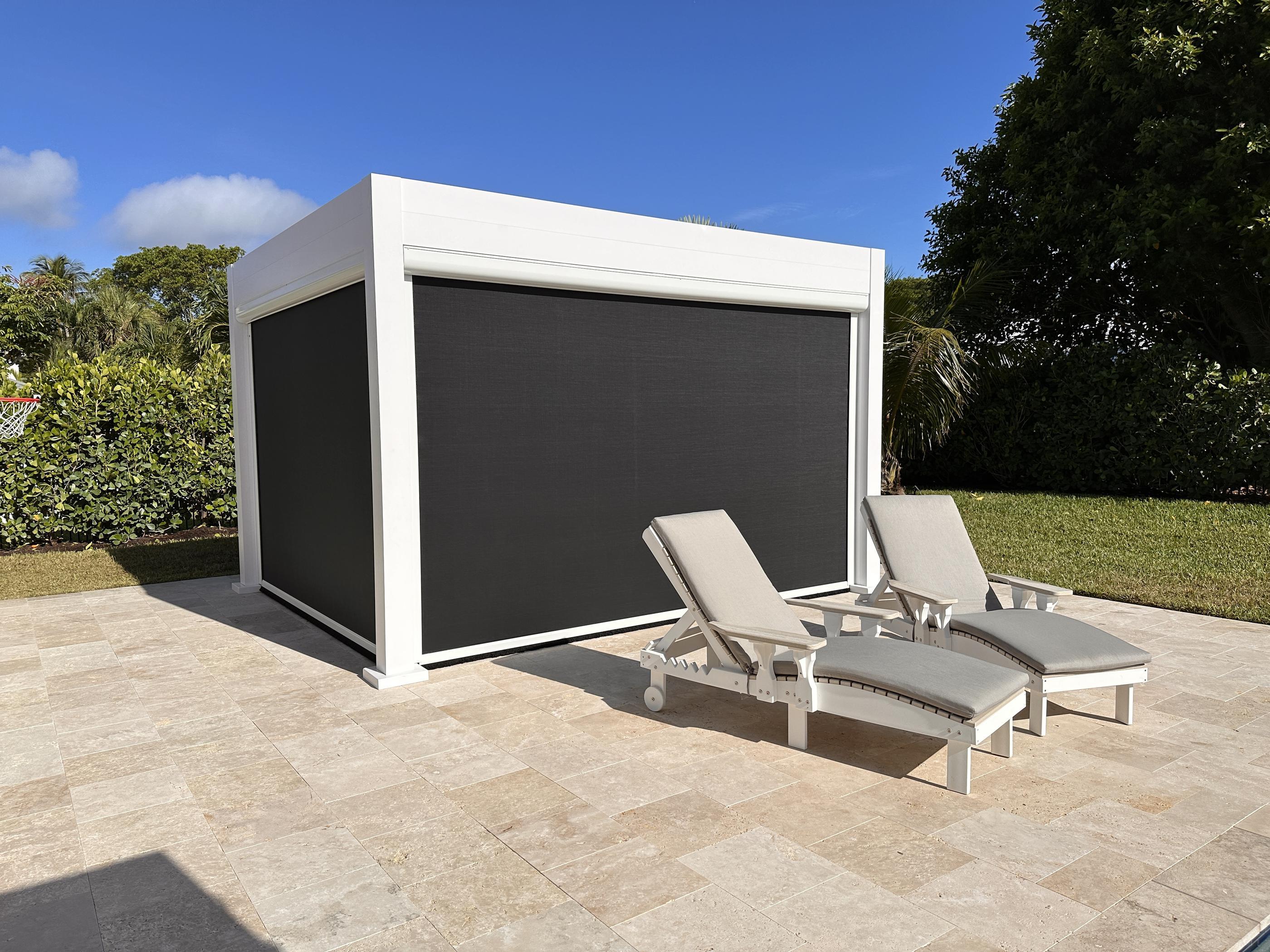 With a simple press of a button, your space changes. Screens lower smoothly to create shade and comfort, then disappear when you’re ready to let the outdoors back in.