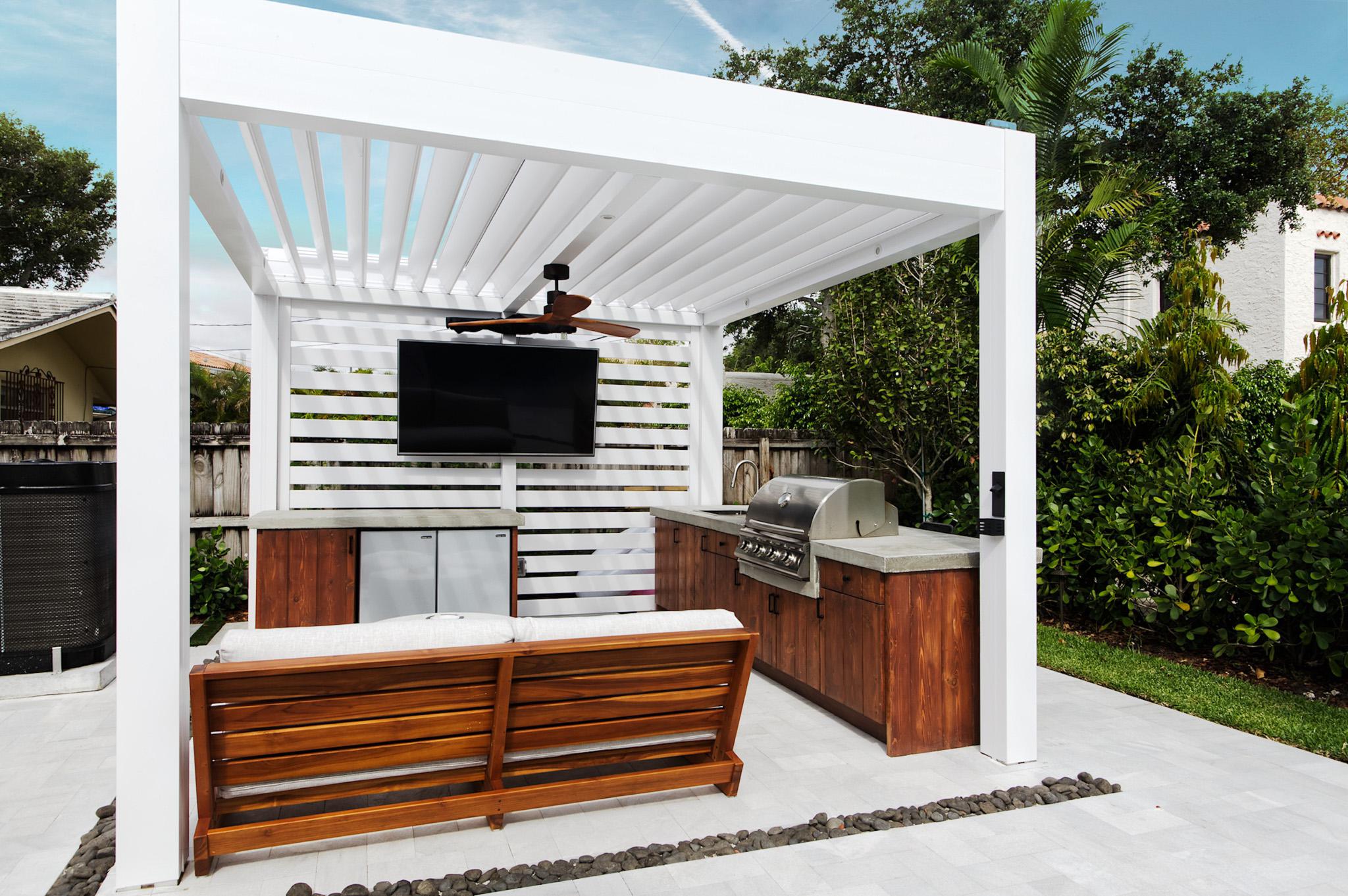 You control the roof in seconds. Open the louvers to bring in sun and airflow. Tilt them to cut glare while keeping the breeze. Close them when rain hits to create a covered area that still feels open, not boxed in. Because the system is motorized, you can set the roof where you want it and keep it there, whether you are hosting guests, watching a game outside, or just trying to stay comfortable during the hottest part of the day. The result is a cleaner outdoor space that looks custom because it is custom, and it performs like it, too.