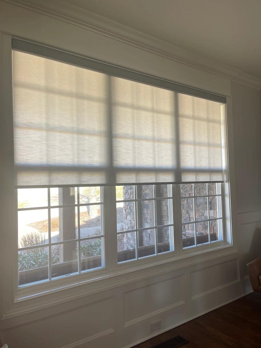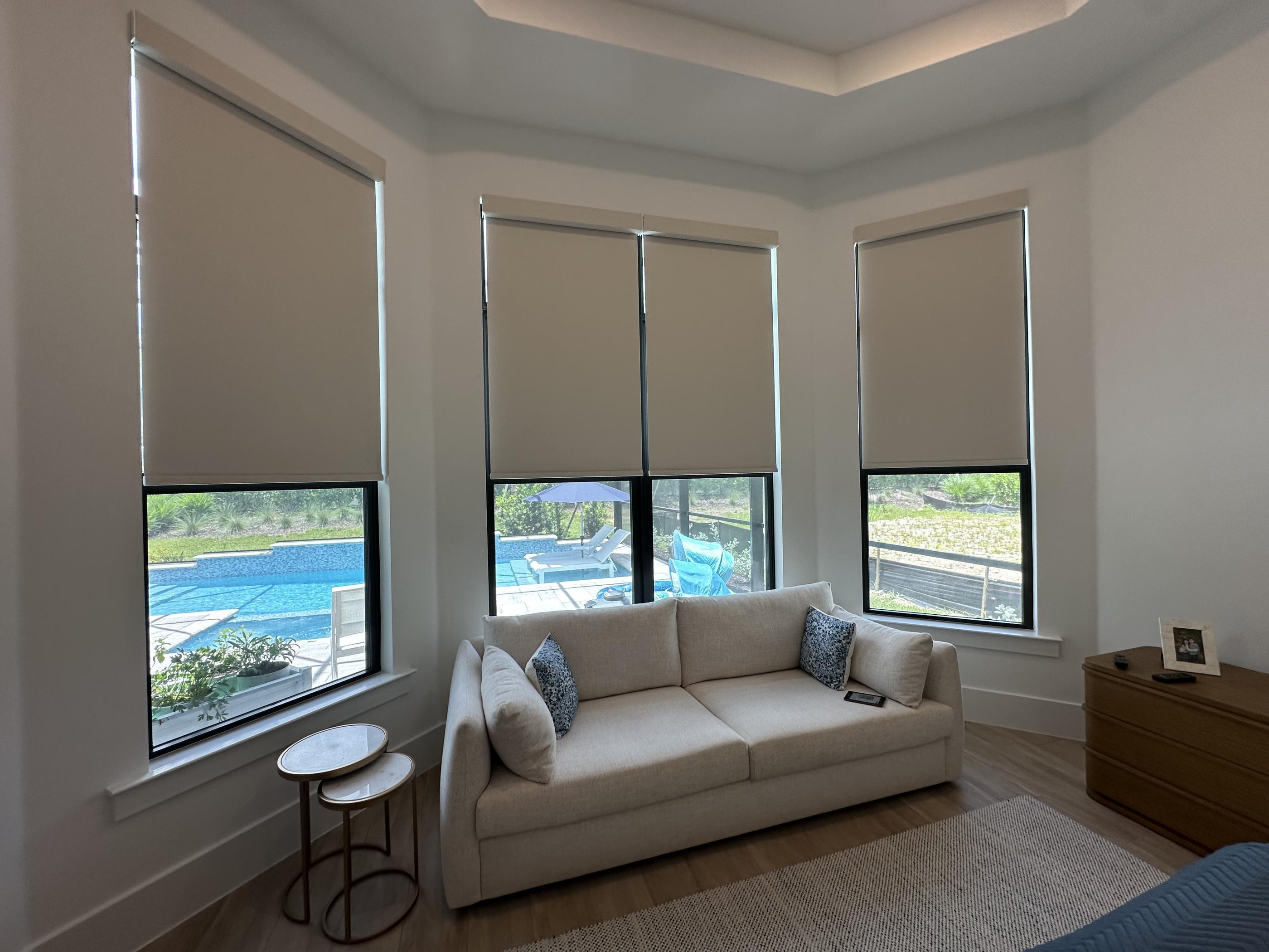 Motorized shades make daily light control simple. They raise and lower smoothly with no cords, no reaching, and no daily fuss.