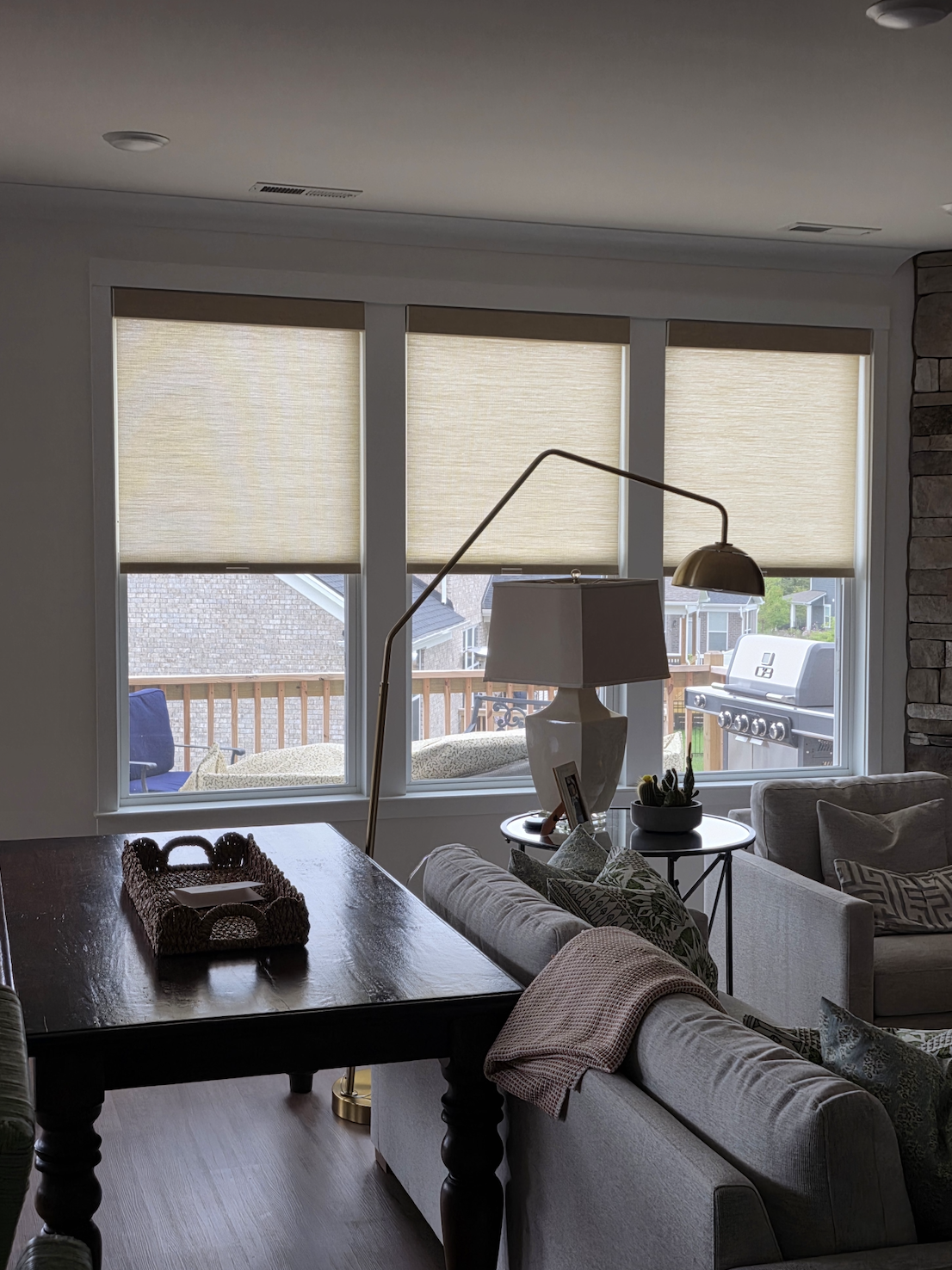 Light-filtering shades give you daytime privacy without blocking natural light. The woven fabric softens direct sun and cuts glare, so your space stays bright and comfortable. They work well in living rooms and open areas, with a modern color lineup that matches your decor.